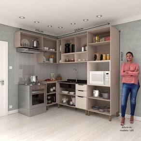 Cozinha Modulada Completa 6 Peças Com Balcões E Aéreos Sem Pia Stylo Luciane Móveis Cinammon/beige