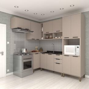 Desenvolvida com materiais de excelencia, a Cozinha Stylo oferece excelente distribuicao de espaco interno. E estruturada em 100 MDP e possui dobradicas slow motion com amortecedor incorporado para fechamento suave das portas. Conta com puxadores tipo aste em Aluminio Preto dando um toque especial de classe e elegancia.