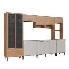 Itens Inclusos: Cristaleira, Balcão para Pia, Balcão para cooktop, Armario aéreo 120, Armario aéreo 80, Torre para fornos