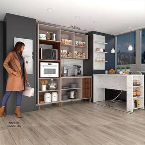 Ambiente Composto por - 1 Paneleiro Torre Quente 70cm 4 Portas com Espaço para Forno e Micro - ondas Stylo Luciane Móveis 236 x 70 x 51,5 -A x L x P - cm- - 1 Armário Aéreo 60cm 2 Portas Stylo Luciane Móveis 85 x 60 x 33 -A x L x P - cm- - 1 Armário Aéreo 60cm 2 Portas Stylo Luciane Móveis 85 x 60 x 33 -A x L x P - cm- - 1 Balcão para Pia 120cm 2 Portas e 3 Gavetas sem Tampo Stylo Luciane Móveis 87 x 120 x 51,5 -A x L x P - cm- - 1 Bancada Mesa Gourmet para Cozinha 150cm X 97cm com 3 Prateleiras Suprema Luciane Móveis 97 x 150 x 54,5 -A x L x P - cm- - 1 Painel de Cozinha 3 Prateleiras Suprema Luciane Móveis 123 x 54,2 x 16,5 -A x L x P - cm- - 1 Tampo para Balcão 120cm Stylo Luciane Móveis 8,5 x 120 x 53 -A x L x P - cm-
