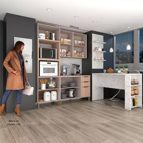 Ambiente Composto por - 1 Paneleiro Torre Quente 70cm 4 Portas com Espaço para Forno e Micro - ondas Stylo Luciane Móveis 236 x 70 x 51,5 -A x L x P - cm- - 1 Armário Aéreo 60cm 2 Portas Stylo Luciane Móveis 85 x 60 x 33 -A x L x P - cm- - 1 Armário Aéreo 60cm 2 Portas Stylo Luciane Móveis 85 x 60 x 33 -A x L x P - cm- - 1 Balcão para Pia 120cm 2 Portas e 3 Gavetas sem Tampo Stylo Luciane Móveis 87 x 120 x 51,5 -A x L x P - cm- - 1 Bancada Mesa Gourmet para Cozinha 150cm X 97cm com 3 Prateleiras Suprema Luciane Móveis 97 x 150 x 54,5 -A x L x P - cm- - 1 Painel de Cozinha 3 Prateleiras Suprema Luciane Móveis 123 x 54,2 x 16,5 -A x L x P - cm- - 1 Tampo para Balcão 120cm Stylo Luciane Móveis 8,5 x 120 x 53 -A x L x P - cm-