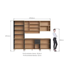 Medida de cada item (A x L x P): IS1851 – Cristaleira 0,80m – 231,5x79,9x52cm IS1630 – Aéreo 1,20m –1,20x75,5x36,8cm IS1500 – Balcão 1,20m – 95x1,20x52cm IS1611 – Aéreo 0,80m – 75,5x80x36,8cm IS1501 – Balcão 0,80m – 95x80x52cm IS1621 – Aéreo Micro –42,5x80x45cm IS1650 - Nicho – 22,5x119,8x15,5cm TB1225 – Tampo – 25x1,20x52cm
