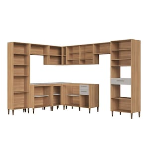 A Cozinha Modulada Jade Delmarco 9 peças de canto, com Torre Quente e Paneleiro Duplo, é uma cozinha que soma elegância com praticidade, presentando um design moderno e funcional, contemporânea, com linhas retas e combinação de cores neutras. Produzida toda em chapa em MDP de 15cm, revestido com perfect, traz excelente acabamento e qualidade. Possui dobradiças com amortecimento, puxadores em alumínio com boa ergonomia, pés com niveladores de piso, altos e visíveis nos móveis, facilitando a limpeza. Possui paneleiro duplo com amplo espaço de armazenamento, 2 nichos embutidos para micro-ondas/forno elétrico, prateleiras abertas decorativas. Esses itens de qualidade superior conferem durabilidade e maior vida útil ao móvel. É o produto perfeito para abrilhantar seu espaço da cozinha.