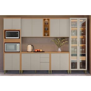 Cozinha Completa Allure 6 Peças (2Aéreos+2Balcões+1Cristaleira+1TorreQuente) CP21 Jequitiba/Gris Fosco - Linea Brasil Abaixo segue os produtos que compoem o KIT: