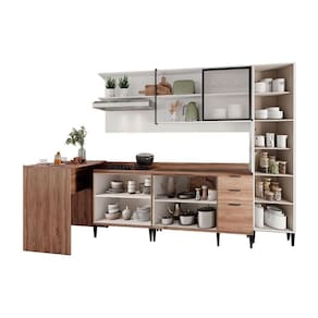 Cozinha Completa Alpha 5 Peças (1Aéreo+2Balcões+1Paneleiro+1 Ilha) C5P100 Freijo/Branco - Carraro Abaixo segue os produtos que compoem o KIT: - Paneleiro de Cozinha Alpha 2510 c/ 3 Portas 50cm Branco - Carraro - 1 unidades Dimensões: Alt: 220cm x Larg50cm x Comp/Profund:50cm