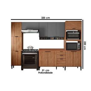 Cozinha Completa Alpha 5 Peças (2Aéreos+1Balcão+1Paneleiro+1TorreQuente) C5P98 Freijo/Cinza - Carraro