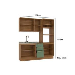 Cozinha Modulada Completa Botanic 3 Peças (1Aéreo+1Balcão+1Paneleiro) s/Pia M652 Nogueira/Verde Oliva - Kappesberg - Blush