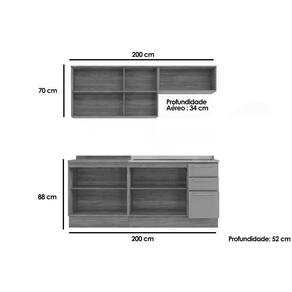 Dimensões: Alt: 88cm x Larg120cm x Comp/Profund:120cm
