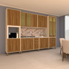 Ambiente composto por: - 1 Balcao de Pia sem Tampo para Cozinha 120cm 2 Portas de Abrir, 3 Gavetas Sofia Luciane Moveis 87 x 120 x 51,5 (Altura x Largura x Profundidade - cm) - 1 Balcao de Cozinha com Tampo 80 cm 2 Portas de Abrir 1 Prateleira Sofia Luciane Moveis 89,5 x 80 x 53 (Altura x Largura x Profundidade - cm) - 1 Armario Aereo de Cozinha 80 cm 2 Portas de abrir 2 Prateleiras Sofia Luciane Moveis 85 x 80 x 33 (Altura x Largura x Profundidade - cm) - 1 Armario Aereo de Cozinha 120 cm 3 Portas 5 Prateleiras Sofia Luciane Moveis 85 x 120 x 33 (Altura x Largura x Profundidade - cm) - 1 Paneleiro de Cozinha 70 cm com Nicho Microondas 4 Portas 4 Prateleiras Sofia Luciane Moveis 236 x 70 x 51,5 (Altura x Largura x Profundidade - cm) - 1 Paneleiro de Cozinha 70 cm 2 Portas com Vidro Reflecta Bronze 3 Gavetas Sofia Luciane Moveis 236 x 70 x 51,5 (Altura x Largura x Profundidade - cm)