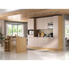 Cozinha Modulada Completa com Bancada Ilha 8 Peças com Tampo e Rodapé Classic Luciane Móveis - Nude