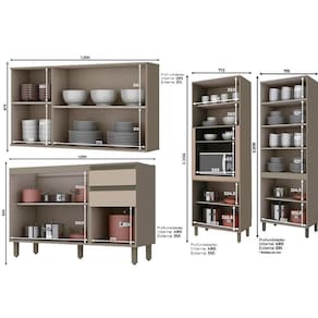 Cozinha Completa Connect 9 Peças (3 Armários + 2 Balcões + 2 Paneleiros + 2 Complementos) C9P02 Duna/Cristal - Henn