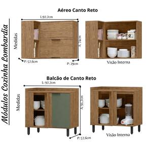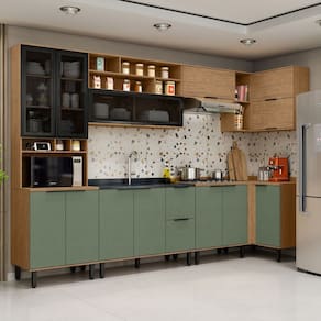 A Versão 7 Peças da Cozinha Completa Modulada de Canto Lombardia é perfeita, possui 13 portas e 3 Gavetas ( sendo 1 Interna) oferece um amplo espaço para deixar a sua cozinha muito organizada e com muito estilo.
