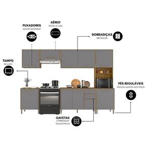Seus tons neutros e acabamentos refinados harmonizam com diversos estilos de decoração, enquanto seus compartimentos inteligentemente projetados oferecem ampla capacidade de armazenamento para todos os seus utensílios e mantimentos. A disposição dos módulos permite uma personalização flexível, adaptando-se perfeitamente às suas necessidades e ao tamanho do seu ambiente.
