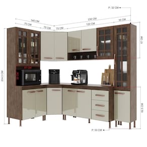 QUANTIDADE DE GAVETAS: 3 | LARGURA (CM): 375 | QUANTIDADE DE PORTAS: 14 | MATERIAL: MDP | ALTURA (CM): 204,5 | PROFUNDIDADE (CM): 53 | TAMPO DO BALCÃO INCLUSO: Sim | QUANTIDADE DE PEÇAS: 6 | Cor: Noce/Off-White | Tipo de móveis de cozinha: Completa | Requer Montagem: Sim | Materiais do Corpo: MDP | Inclui manual de montagem: Sim