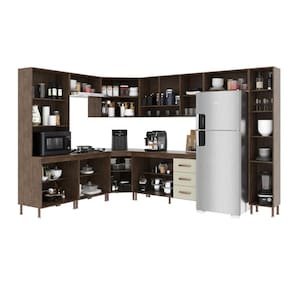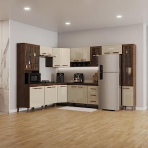 Cozinha Modulada Completa Fidelitá Lisboa 9 Peças 515cm 20 Portas 3 Gavetas Com Tampo Noce/Off-White - Off White