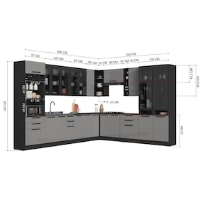 Produzida em MDP de alta qualidade, esta versão se destaca pelos detalhes em vidro fumê, pintura UV perolizada na cor Titânio, rodapés em todos os módulos, dobradiças com slow motion, corrediças telescópicas e pés com regulagem. Uma composição completa para transformar seu ambiente.
