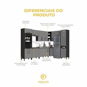 Apresentamos a Cozinha Modulada Fidelitá Mônaco: uma solução completa, funcional e sofisticada para transformar sua casa. Com 9 módulos independentes, essa composição de 549cm oferece um excelente aproveitamento de espaço, além de acabamento refinado que valoriza qualquer ambiente.