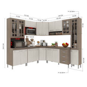 - Torre Quente (70cm) – 4 portas (2 de vidro) e espaço para forno/micro-ondas sendo (Altura: 39cm x Largura: 67cm x Profundidade: 53cm)
