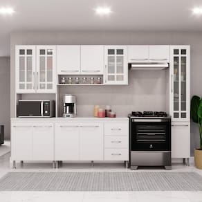 QUANTIDADE DE PEÇAS: 5 | QUANTIDADE DE GAVETAS: 3 | QUANTIDADE DE PORTAS: 12 | ALTURA (CM): 204,5 | LARGURA (CM): 295 | PROFUNDIDADE (CM): 53 | MATERIAL: MDP | TAMPO DO BALCÃO INCLUSO: SIM | Cor: Branco