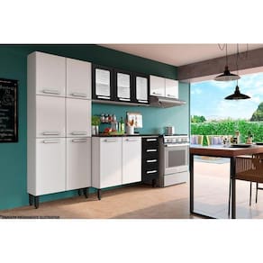 Cozinha Completa Gourmet 4 Peças (2 Armários + 1 Balcão + 1 Paneleiro) C4P63 Branco/Preto - Bertolini