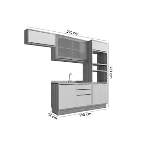 Dimensões(Cm): Comnto(Profundidade): 53cm x Largura: 70cm x Altura: 231cm Material de Estrutura - 100% MDF Tipo de Pintura - Pintura em UV (Ultravioleta) Tipo de Acabamento da Pintura - Fosca Tipo de puxador - Alumínio Escovado Quantidade de Portas - 3 Portas de Abrir Quantidade de Prateleiras - 3 Prateleiras Quantidade de nichos - 2 nichos Diferenciais dos Nichos - Nicho p/ Forno - Nicho p/ Microondas Montagem do Produto - Desmontável Certificação de Qualidade - Certificação de Qualidade Aprovada Garantia - 3 meses
