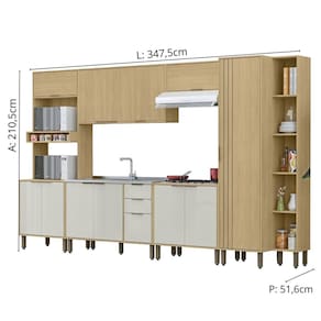 Cozinha Montada: Altura: 210,5 cm | Comprimento: 347,5cm | Profundidade: 51,6 cm