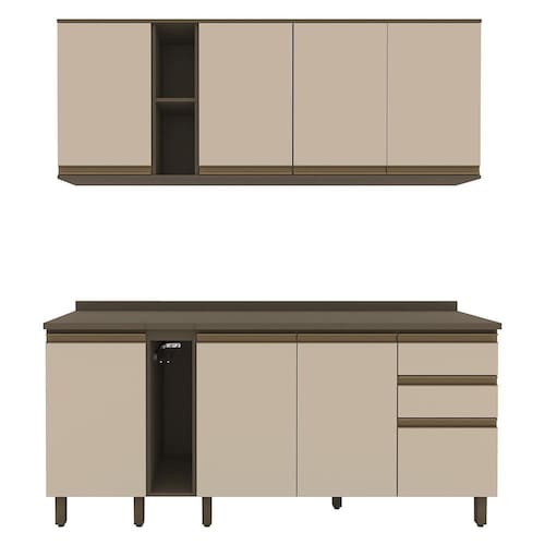 A Cozinha Modulada Connect 6 Peças com Porta Toalha da Móveis Henn é a escolha ideal para quem busca funcionalidade e sofisticação no mesmo ambiente. Com estrutura em MDF e pintura UV, oferece durabilidade e acabamento refinado. As portas com dobradiças metálicas e gavetas com corrediças telescópicas garantem praticidade no dia a dia. Os puxadores em perfil de alumínio bronze trazem um toque moderno ao conjunto. O balcão de 120cm conta com divisor de talheres e os módulos acompanham tampos em MDP, incluindo o porta toalha. Pés com regulagem de altura e amplo espaço interno completam essa solução versátil e elegante para sua cozinha.