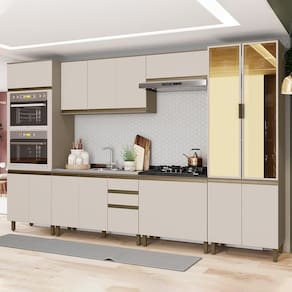 Cozinha Modulada Connect 6 Peças com Torre Quente 2 Fornos e Cristaleira - Móveis Henn - Bege