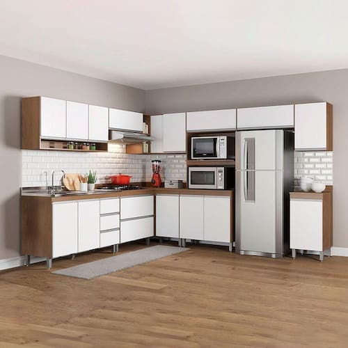 Por se tratar de armarios de cozinha modulados voce pode ajustar os modulos conforme o espaco disponivel e montar diversas modulacoes diferentes para deixar o ambiente muito mais aconchegante.
