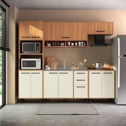 1x Balcão de Cozinha 3 Portas 2 Gavetas 120cm Havana Rovere / Champanhe Largura: 120 cm Altura: 87,5 cm Peso: 35,9 kg Profundidade: 49,5 cm Necessita Montagem: Sim
