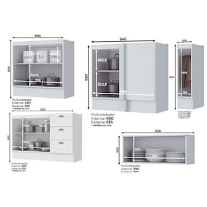 Cozinha Modulada Henn Americana 14 Peças (3 Armários + 4 Balcões + 1 Paneleiro + 6 Complementos) C14P01 Branco