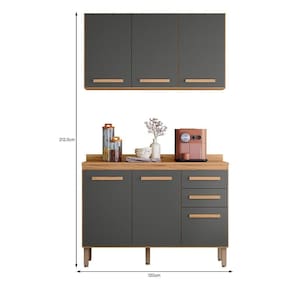 O ambiente é composto por (L x A x P): 1x Armário Aéreo Intenza 120cm: 120 x 63,5 x 28 cm 1x Balcão de Cozinha Intenza 120cm: 120 x 92,5 x 53 cm