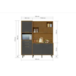 Cozinha Compacta Loft Imperatriz 3Nichos Microondas c/6Portas e 2Gavetas Ripado 183x212cm Freijo/Off White - Nesher