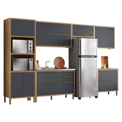 Cozinha Modulada Paola Composição 1 Carvalho Dakar Grafite - Aramóveis
