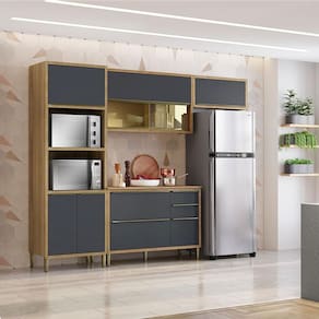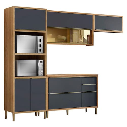 Cozinha Modulada Paola Composição 3 Carvalho Dakar Grafite - Aramóveis