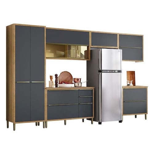 Cozinha Modulada Paola Composição 4 Carvalho Dakar Grafite - Aramóveis