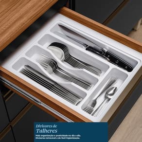 ESPECIFICAÇÕES: Estrutura em MDF Pintura UV Portas sendo 3 com vidro reflecta e 1 ripada Dobradiças com amortecimento Pistão a gás Gavetas Corrediças telescópicas Puxadores metálicos Espaço para cooktop e depurador Espaço para forno ou micro-ondas (L x A x P): 64 x 45 x 51 cm Acompanha divisor de talheres no balcão 120cm Tampo em MDF nos balcões 120cm e 80cm Pés com regulagem de altura Amplo espaço interno