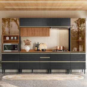 A Cozinha Modulada Proença 6 Peças com Paneleiro 1 Forno e Balcão 120cm é prática e completa. Produzida em MDF com pintura UV, possui portas (4 com vidro reflecta e 1 ripada), gavetas com corrediças telescópicas, dobradiças com amortecimento e pistão a gás. Conta com espaço para cooktop, depurador, forno ou micro-ondas (64 x 45 x 51 cm), divisor de talheres no balcão de 120 cm, tampos em MDF nos balcões de 120 cm e 80 cm e pés com regulagem de altura. Ideal para organizar e valorizar sua cozinha.