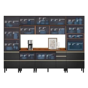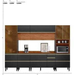 A Cozinha Modulada Proença 6 Peças com Paneleiro 1 Forno combina funcionalidade e design refinado. Produzida em MDF com pintura UV, conta com portas sendo 3 com vidro reflecta, dobradiças com amortecimento e pistão a gás. Suas gavetas possuem corrediças telescópicas para abertura suave, e os puxadores metálicos agregam durabilidade e elegância. O módulo paneleiro oferece espaço para forno ou micro-ondas (64 x 45 x 51 cm), enquanto o balcão de 120cm acompanha divisor de talheres. Os tampos em MDF estão presentes nos balcões de 120cm e 60cm. Com pés reguláveis e amplo espaço interno, é ideal para quem busca uma cozinha completa e sofisticada.