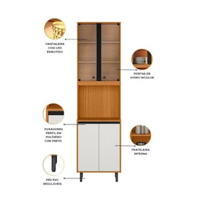 Com pés reguláveis em PVC, a Ravena garante nivelamento perfeito, enquanto os detalhes do conjunto, como os rodapés e puxadores, asseguram um toque de modernidade e funcionalidade.