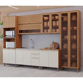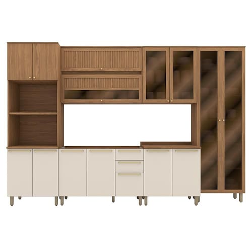 Cozinha Modulada Requinte 6 Peças com Torre Quente 2 Fornos e Cristaleira - Móveis Henn - Bege