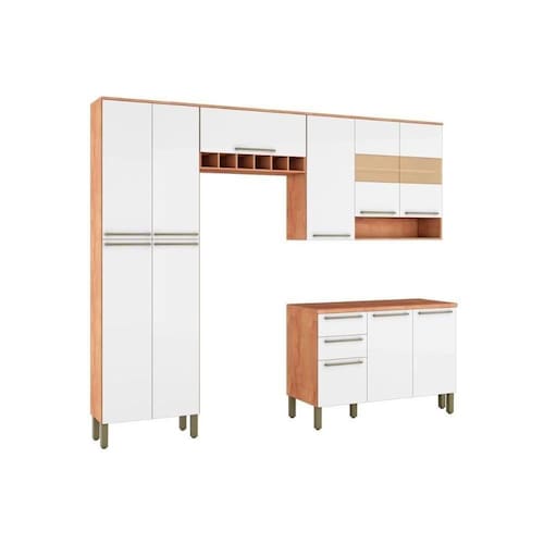 Cozinha Completa Nápoli Prime 4 Peças (2 Armários + 1 Balcão + 1 Paneleiro) C4P01 Castanho/Branco - Ronipa