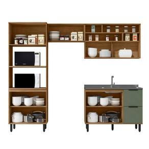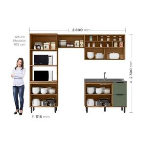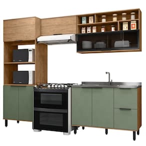 Cozinha Modulada Toscana 4 Peças Mdf com Aéreo 1200 Porta de Vidro Basculante e Torre 2 Fornos Freijó/Jade - Marrom