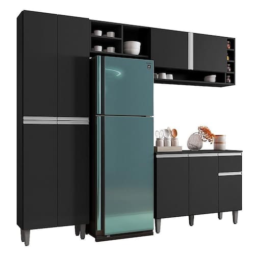 Tonalidade: Multicolorido | Produto: Cozinha Modulada | Tipo de móveis de cozinha: Armário | Fabricante: AJL Móveis Cor: Preto