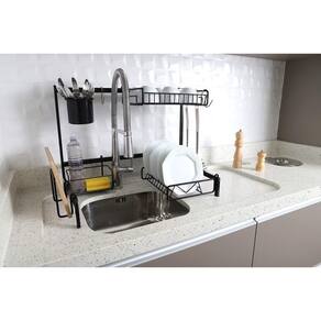 Características: Fabricado 100% em aço. Ideal para facilitar sua organização na bancada da cozinha. Auto-sustentação, com auxílio de pés para pôr na bancada da pia. Extensor de altura, para ajustar de 46cm à 55cm. Suporta até 20kg.