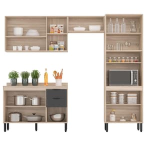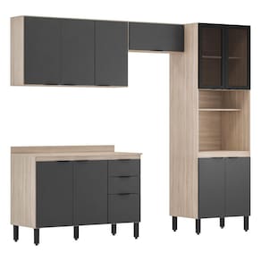 Cozinha Modular Com 4 Peças Firenze Composição 02 Avena Grafito Demóbile