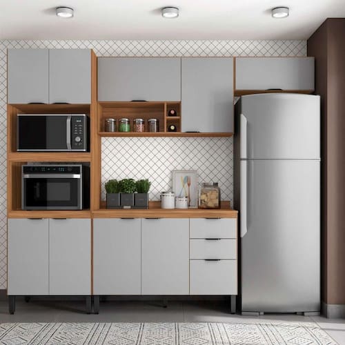 A Cozinha Modular Firenze proporciona a experiência de ter uma cozinha criada especialmente para a sua cozinha. São inúmeras opções de módulos para você criar a composição que melhor atender as necessidade da sua cozinha e visual sofisticado para valorizar ainda mais o ambiente. A sugestão de composição FI0003 é composta por paneleiro com espaço para instalar forno microondas e forno elétrico, armários aéreos com prateleiras internas de diferentes dimensões e nichos e também, balcão com diferentes espaços de armazenamento com ampla bancada para auxiliar no preparo de alimentos. Incrível, não é mesmo? Viva essa experiência. Você vai amar.