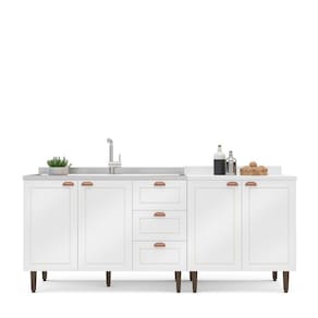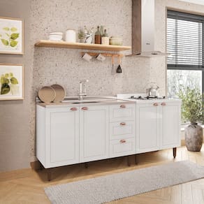 A Cozinha Pérola Compacta possui 2 peças com altura de 93,7 cm largura de 200 cm e profundidade de balcão de 52 cm. Com portas e gavetas em MDF usinadas em baixo relevo, possui estilo Americano e design contemporâneo, funcional e prático para seu dia a dia. Seus puxadores são no formato de concha. Possui dobradiças 3,5cm Slide On (sistema de amortecimento anti batida) e na porta basculante possui além das dobradiças Slide On pistão para proporcionar uma maior abertura. Acabamento da Prateleira: Pintura UV Escala de Brilho da Prateleira: Fosco Acabamento da Gaveta: Pintura UV Escala de Brilho da Gaveta: Brilhante Material do Puxador da Gaveta: Plástico Acabamento da Porta: Pintura UV Escala de Brilho da Porta: Brilhante Material do Puxador da Porta: Plástico Acabamento dos Pés: Poliéster Acompanha Rodapé Decorativo: Não Acompanha Tampo: Não Altura dos Pés: 17 cm Altura Máxima dos Pés: 17.0000 Ambiente Principal: Cozinha Balcão Suporta Pia: Sim codigo_ean: 7900288013002 Complexidade da Montagem: Média: pode ser montado por mais de uma pessoa e/ou necessite de maior conhecimento para montagem Cor: Branco Cor do Produto: Branco Cor Flex: não Cor Interna: Branco Escala de Brilho: Brilhante Espessura do Material da Estrutura: 15 mm Gaveta com Chave: Não Itens Inclusos: 1 móvel desmontado+ kit de ferragens +termo de garantia + manual de montagem. Linha ou Coleção: Pérola Manual de Montagem e Instalação: https://product-hub-prd.madeiramadeira.com.br/966557/documents/acb6bf9d-2a5a-427d-9212-06ecd78c228e2513814493317302294211529.pdf Marca: Yescasa Material da Dobradiça/Corrediça da Porta: Metálica Material da Gaveta: MDF Material da Porta: MDF Material da Prateleira: MDP Material dos Pés: Plástico Medida de cada item (A x L x P): Balcão 2 portas 3 gavetas: 84 x 120 x 50,5 Balcão 2 portas: 93,7 x 80,2 x 52,5 modular: Sim Montagem Flex: sim Necessita Montagem: Sim O Balcão Acompanha Pia: Não Origem do Produto: Nacional Pés Reguláveis: Sim Peso: 60,86 kg Peso Máximo por Gaveta: 5 kg Peso Máximo por Prateleira: 10 kg Possui Pés: 09 Possui Portas: Sim Possui Prateleiras: Sim Possui recorte para Cooktop: Não Possui Rodízio: Não Possui Vidro: Não Produto Montado: Sim Recomendações de Uso, Manutenção e Limpeza: Utilize um pano macio umedecido com água e sabão neutro, seguido de pano seco. Não utilize produtos químicos ou abrasivos para limpeza, pois estes danificam o revestimento do móvel. Sapatas Niveladoras: Sim Sistema de Montagem: Cavilha, parafuso, minifix e prego Suporta Até (kg): 10 kg Tamanho Indicado da Pia: L: 120 x P: 52 cm Tamanho Indicado do Tampo: L: 120 x P: 52 cm Tamanho Indicado do Tampo ou Pia: L: 120 x P: 52 cm Tipo de Corrediça da Gaveta: Metálica Telescópica Tipo de Dobradiça da Porta: Soft close Tipo de Puxador da Gaveta: Externo Tipo de Puxador da Porta: Externo