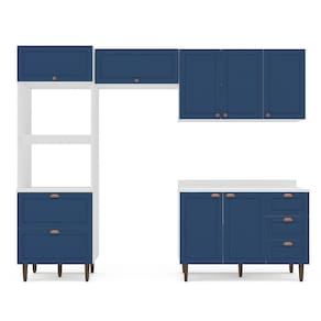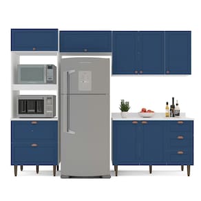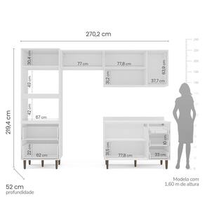 A Cozinha Pérola Completa possui 4 peças com altura de 219,4 cm largura de 270,2 cm e profundidade de balcão de 52 cm. Com portas e gavetas em MDF usinadas em baixo relevo, possui estilo Americano e design contemporâneo, funcional e prático para seu dia a dia. Seus puxadores dos módulos inferior são no formato de concha. E na parte superior são modelo pontual, ambos na cor cobre. Possui dobradiças 35mm Slide On (sistema de amortecimento anti batida) e na porta basculante possui além das dobradiças Slide On pistão para proporcionar uma maior abertura. Possui tampo de 25 mm no balcão. Acabamento da Prateleira: Pintura Escala de Brilho da Prateleira: Fosco Acabamento da Gaveta: Pintura Escala de Brilho da Gaveta: Fosco Material do Puxador da Gaveta: Plástico Acabamento da Porta: Pintura Escala de Brilho da Porta: Fosco Material do Puxador da Porta: Plástico Acabamento dos Pés: Poliéster Acompanha Tampo: Não Altura dos Pés: 17 cm Ambiente Principal: Cozinha Complexidade da Montagem: Média: pode ser montado por mais de uma pessoa e/ou necessite de maior conhecimento para montagem Cor: Branco/Azul Cor do Produto: Branco/Azul Cor Flex: Não Cor Interna: Branco Escala de Brilho: Fosco Espessura do Material da Estrutura: 15 mm Gaveta com Chave: Não Itens Inclusos: 1 móvel desmontado, kit de ferragens, termo de garantia e manual de montagem. Manual de Montagem e Instalação: https://product-hub-prd.madeiramadeira.com.br/949278/documents/d9ac64b4-ab3d-416f-a613-cf5a02a572c882302316493317254577324703.pdf Material da Dobradiça/Corrediça da Porta: Metálica Material da Gaveta: MDF Material da Porta: MDF Material da Prateleira: MDP Material do Fundo: HDP Material dos Pés: Plástico Medida de cada item (A x L x P): Torre Quente: 219,4 x 70,2 x 52 Balcão: 84 x 120 x 50,5 Aéreo: 67 x 120 x 36,5 Basculante: 33,5 x 80 x 36,5 modular: Sim Montagem Flex: Não Necessita Montagem: Sim O Balcão Acompanha Pia: Não Origem do Produto: Nacional Pés Reguláveis: Sim Peso: 125,2 kg Peso Máximo por Gaveta: 5 kg Peso Máximo por Prateleira: 10 kg Possui Pés: 10 Possui Portas: Sim Possui Prateleiras: Sim Possui recorte para Cooktop: Não Possui Rodízio: Não Possui Vidro: Não Recomendações de Uso, Manutenção e Limpeza: Utilize um pano macio umedecido com água e sabão neutro, seguido de pano seco. Não utilize produtos químicos ou abrasivos para limpeza, pois estes danificam o revestimento do móvel. Sapatas Niveladoras: Sim Sistema de Montagem: Cavilha, parafuso, minifix e prego Suporta Até (kg): 10 kg Tamanho Indicado da Pia: L: 120 x P: 52 cm Tamanho Indicado do Tampo: L: 120 x P: 52 cm Tipo de Corrediça da Gaveta: Telescópica Tipo de Dobradiça da Porta: Soft close Tipo de Puxador da Gaveta: Externo Tipo de Puxador da Porta: Externo