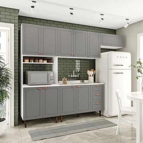 Cozinha Pérola com 4 Peças Paneleiro/torre Quente Aéreo 3 Portas Balcão 120 e Basculante Yescasa Branco/Cinza
